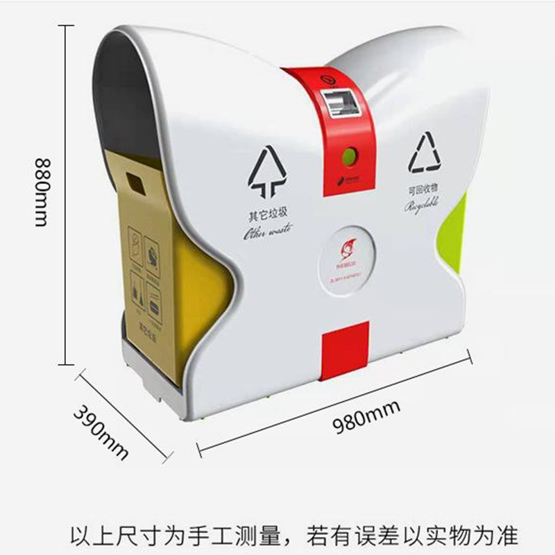 4.側(cè)板文字標(biāo)識(shí)采用絲網(wǎng)印刷,印刷有“可回收物” “其他垃圾”,分類標(biāo)識(shí)參照《城市生活垃圾分類標(biāo)識(shí)》規(guī)定的名稱、圖形、符號(hào)和顏色要求,LOGO可定制。