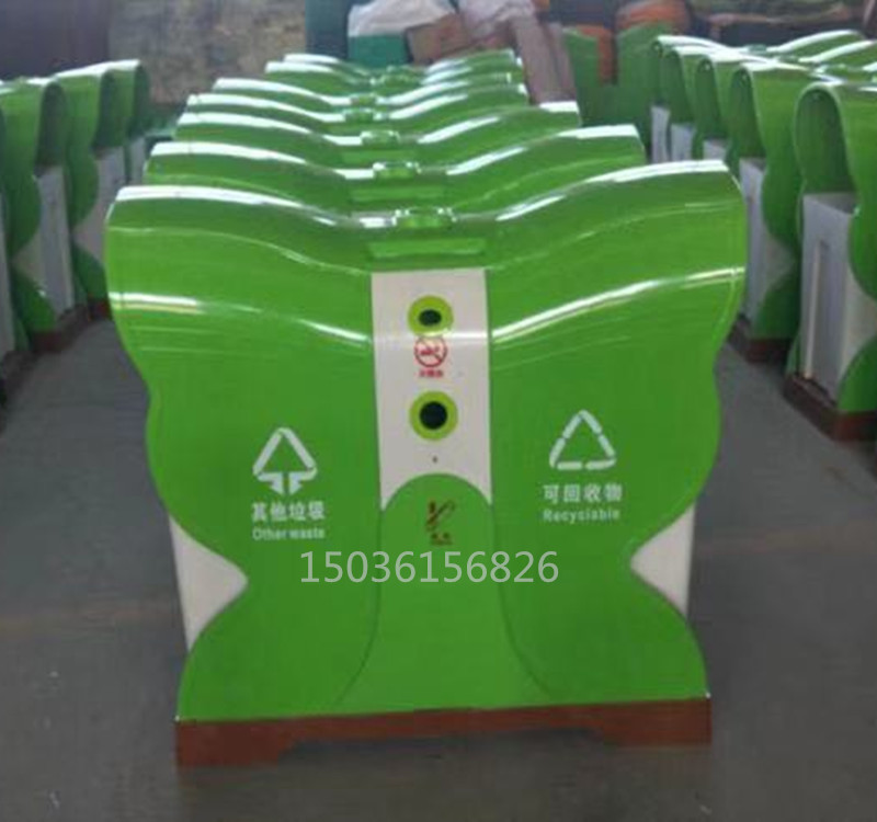 蝴蝶型分類環(huán)保垃圾桶果皮箱采用SMC復合材料,3500噸壓機模壓成型,內(nèi)外光潔度一致。蝴蝶果皮箱采用鏡面模具生產(chǎn),表面光潔度高,防涂鴉防粘貼,防砸,耐燒,永不生銹,不易褪色,耐酸堿,易清洗,使用壽命長