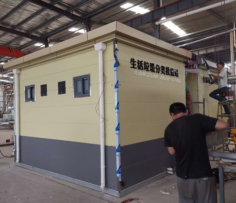 生活垃圾分類投放站廠家定制——久遠(yuǎn)環(huán)衛(wèi)是一家集研發(fā)生產(chǎn)、銷售服務(wù)為一體的大型環(huán)衛(wèi)設(shè)備生產(chǎn)企業(yè),公司注冊(cè)資金5000萬元,占地面積50余畝,擁有現(xiàn)代化生產(chǎn)車間1萬余平方米,辦公面積1000余平方米,在職員工200多人,具有雄厚的技術(shù)及生產(chǎn)實(shí)力。 公司主要生產(chǎn)垃圾壓縮中轉(zhuǎn)站、垃圾分類收集房、環(huán)保移動(dòng)公廁、各類垃圾桶果皮箱、環(huán)衛(wèi)工具箱、環(huán)衛(wèi)道班房、崗?fù)?、休閑座椅、等公共環(huán)衛(wèi)設(shè)施。